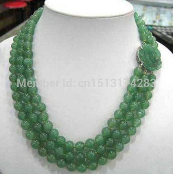 gt;>>charming 3 rows bead necklace clasp 8mm 17-18-19", Silver