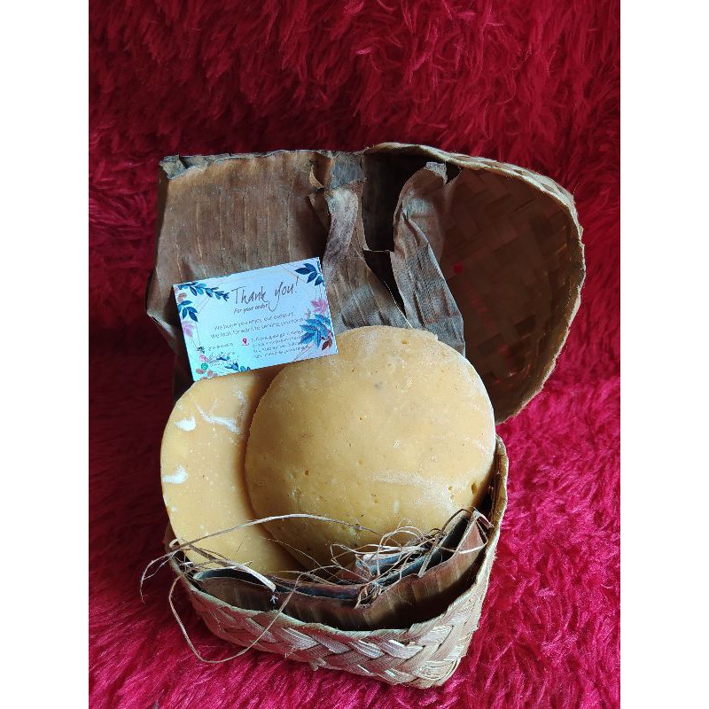 di kemas dengan menggunakan, klaras/daun pisang kering dan di bungkus dengan besek yg sangat aman untuk kemasan.