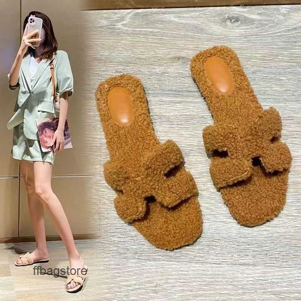 h lamb slippers shearling women flat sandal fur online oran teddy designer wool slipper bottom h ins fashion versatile casual one character