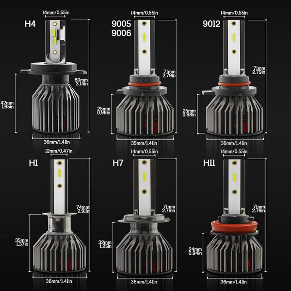 h4 led headlight conversion kit bulbs 100w 10000lm 6000k hi/lo beam 6000k