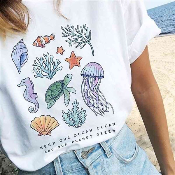 hahayule-jbh keep our ocean clean and our planet green graphic tshirt the orcas save turtle t-shirt cotton women t shirt 210320, White
