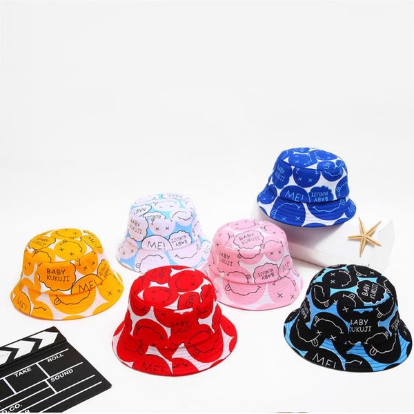 hair accessories autumn baby boys girls toddler cartoon letter printed bucket hats caps reversible sun headwear, Slivery;white