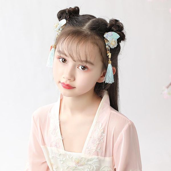 hair accessories han clothing headdress children tassel step shake hairpin retro girl antique chinese wind flower ancient cute clip1, Slivery;white
