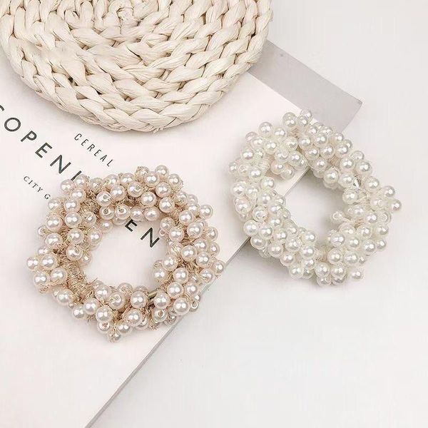 hair clips & barrettes fation woman big pearl ties fashion korean style hairband scrunchies girl holders rubber band accessories, Golden;silver