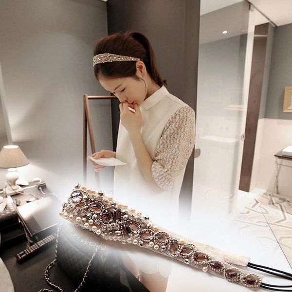 hair clips & barrettes for 26cm women crystal beads pearl girl lace hairband luxury accessories, Golden;silver