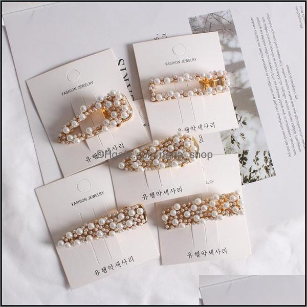 hair clips barrettes jewelry women pearl hairpins side headwear for ladies hairgrip tools fashion accessories hairclip headdress drop deli, Golden;silver