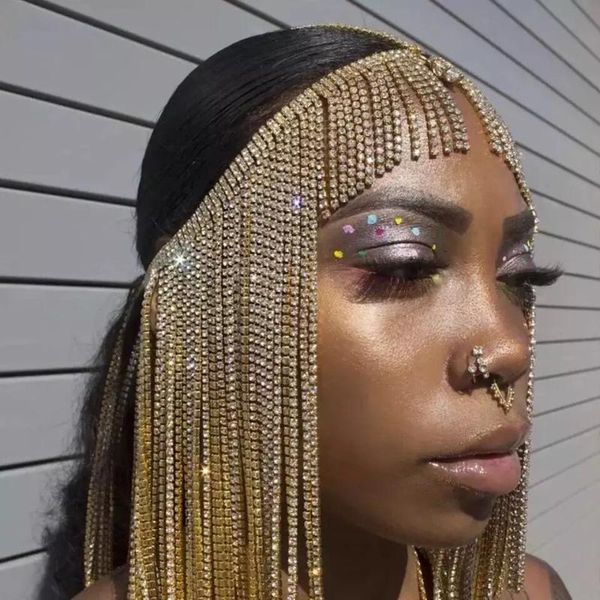 hair clips & barrettes luxury shining rhinestone fringes headdress women's handmade accessories wedding party crystal jewelry wholesale, Golden;silver