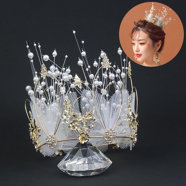 hair clips & barrettes wedding crown elegant pearl cake er round bridal tiara decoration headdress ornaments accessories, Golden;silver