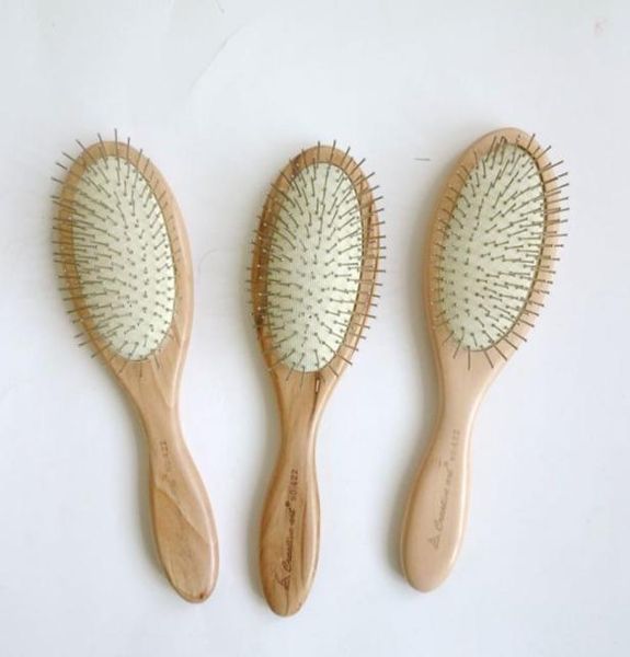 hair extensions brush comb wooden handle massage with metal pins message white air cushion 2806083, Silver