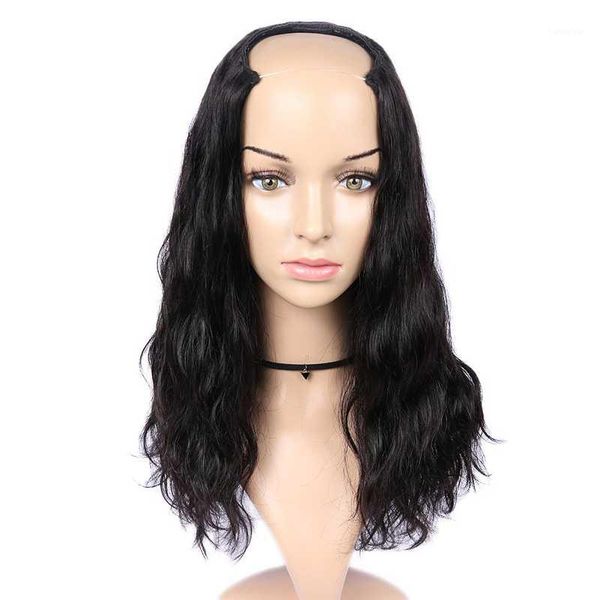 half wig clip in hair brazilian remy body wave wigs 150% density u part human for women 8-24 inch preplucked1, Black;brown