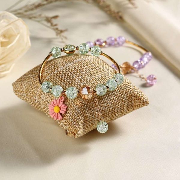 hand catenary beaded giraffe daisy crystal bracelet, Golden;silver