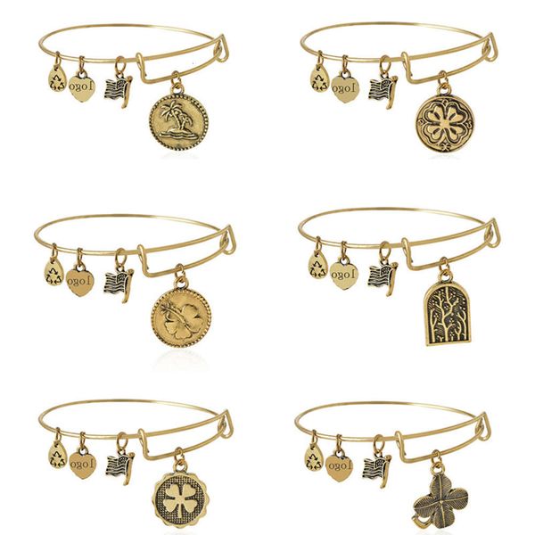 hand catenary selling hand ornamented flower and tree pattern adjustable coil aa bracelet, Golden;silver