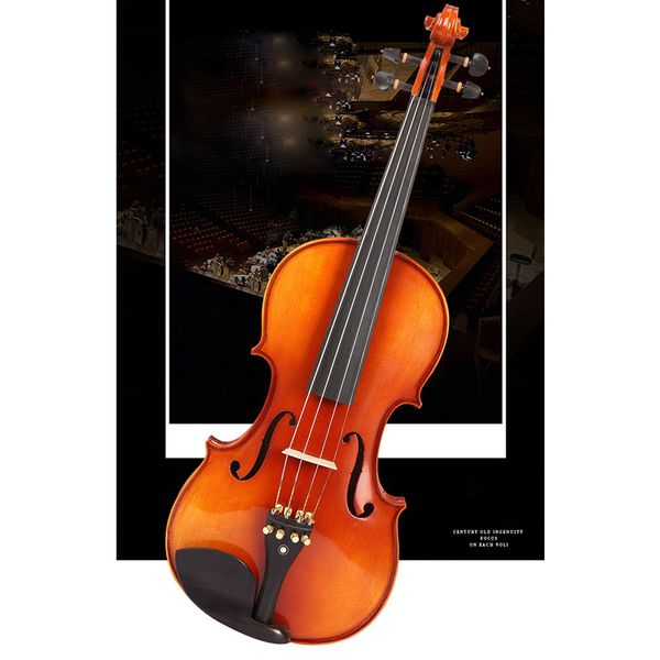 handcrafted violin glossy maple solid wood instrument for adults kids exam with hard case and accessories, tiger patterned