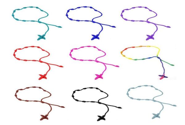 handmade cord knotted cross rosary bracelet rope hand knitted spanish fashion decenarios lucky jewelry4557069, Golden;silver