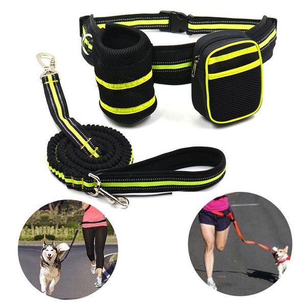 hands dog leash pet elastic belt with bungee large storage pouch adjustable waist for sports running hiking walking