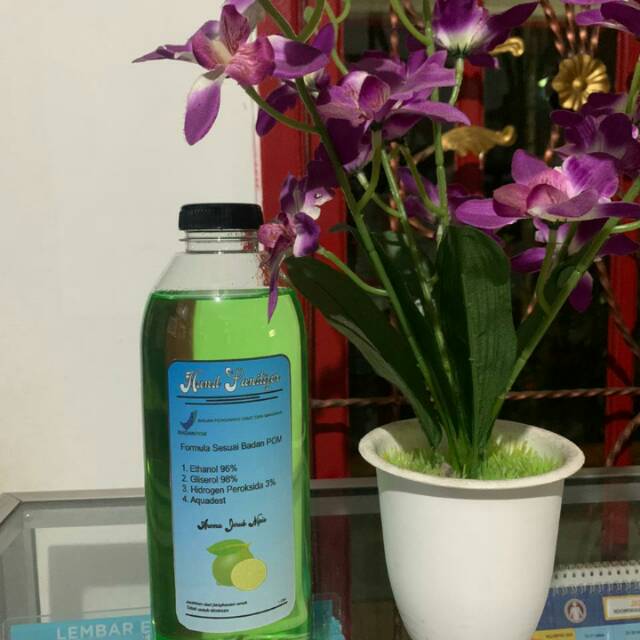 Handsanitizer dibuat berdasarkan aturan dari WHO mengandung alkohol 96%, gliserin, h2O2 3% dan aquadest. Home made karena basic saya farmasi.
