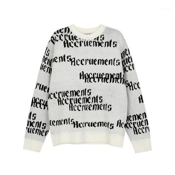 harajuku fringe letter print sweater men and women round neck oversize casual knitted streetwear pullover loose sweaters1, White;black