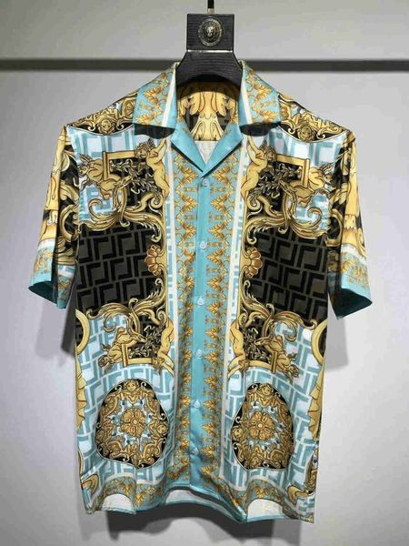 hawaiian fashion printed men casual shirt designer shirts medusa silk shirt hip hop loose short sleeved tshirt tracksuits mens jacket, White;black
