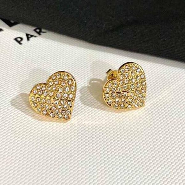 heart shape stud earring with diamond for women wedding jewelry gift ps30274426159, Golden