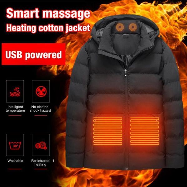 heated jackets heat coat usb electric thermal clothing coat infrared heating hooded jackets winter outdoor warm clothing1, Gray;blue