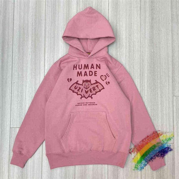 heavy fabric pink human made bat hoodie men women graphic human made hoodie hooded sweatshirts pullovers t220802, Black