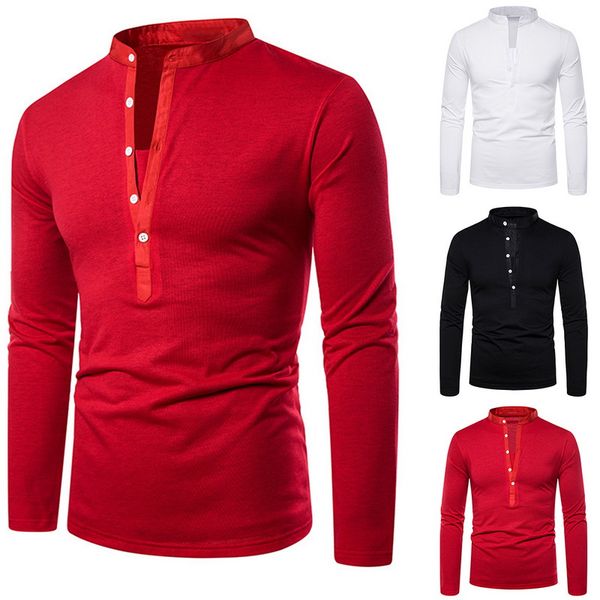 heflashor 2019 mens slim v neck long sleeve muscle solid shirt casual shirts blouse men fit buttons shirt drop shipping, White;black