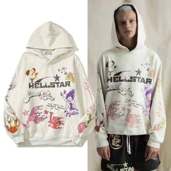 hellstar hoodies men's sweatshirts high street fleece y2k hooded graphic haruku stranger things oversize lose warm pullover sweatshirts, Black