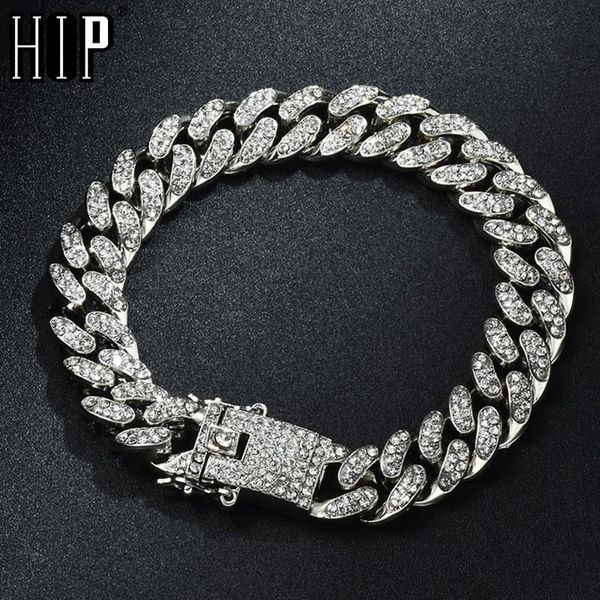 hip hop bling iced out men's rapper bracelet full rhinestone with butterfly miami cuban chain for men women jewelry link,, Black