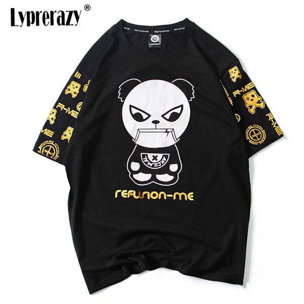 hip hop casual t-shirt summer funny men/women cartoon panda print streetwear cotton tees, White;black