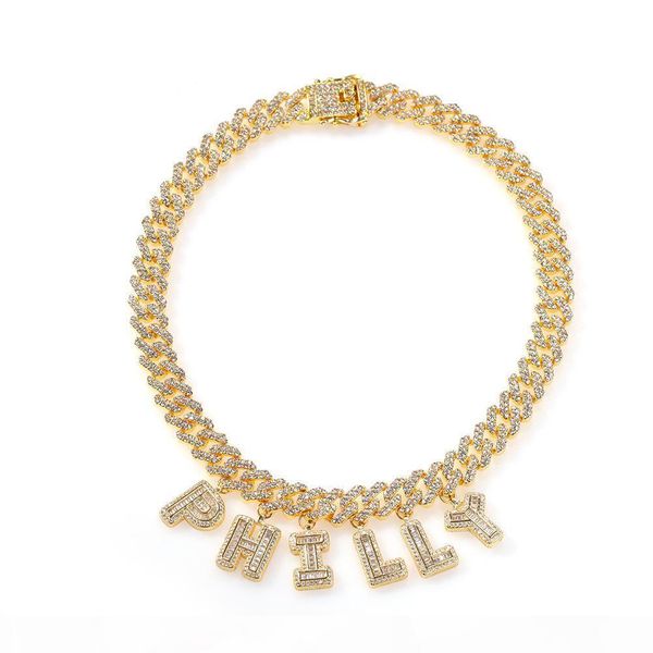 hip hop custom name baguette letter with cuban chain men women micro cubic zircon pendant necklace jewelry, Silver