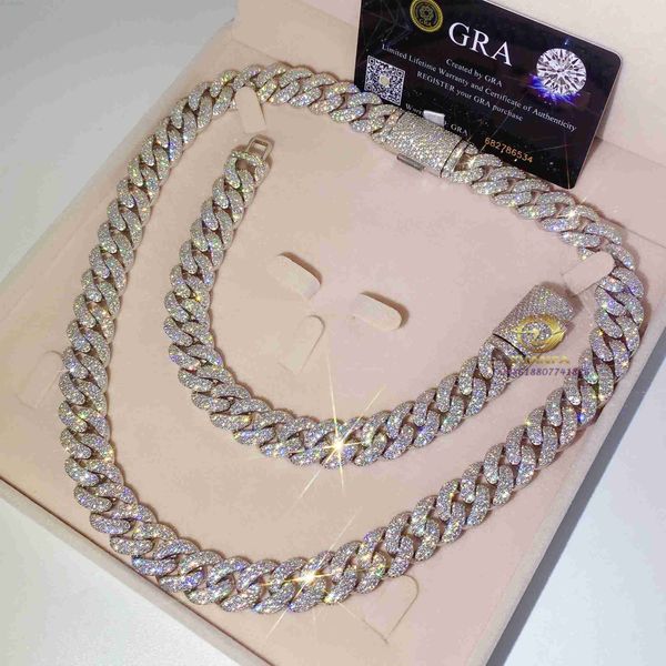 hip hop iced out jewelry prong set vvs1 moissanite diamond cuban link chain necklace, Silver