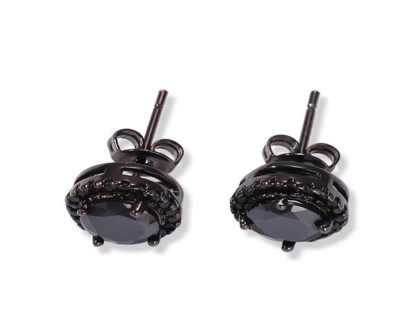 hip hop men black silver cz round stud earrings for men women screw back trendy jewelry 9mmx9mm9545320, Golden;silver
