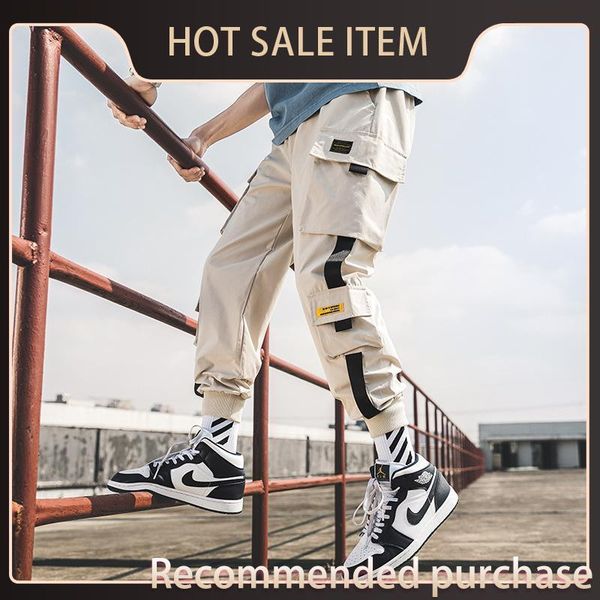 hip joggers jogging men sweatpants hop cargo multi-pocket pants pants sports mens sportswear streetwear casual harem trousers frqir, Black