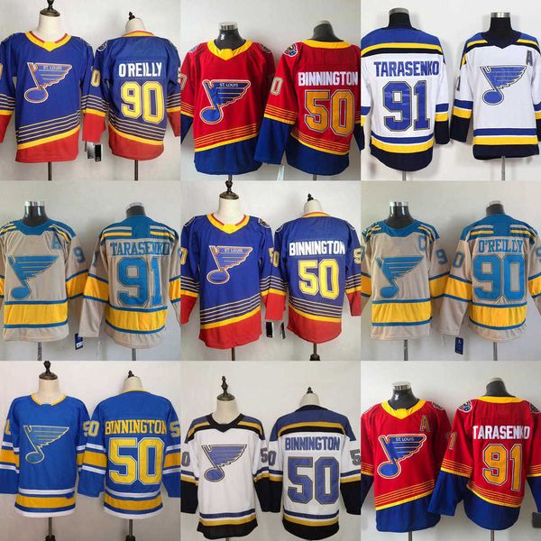 hockey jerseys st. louis''blues 90 ryan o'reilly 91 vladimir tarasenko 50 binnington stitched embroidery men women youth, Black;red