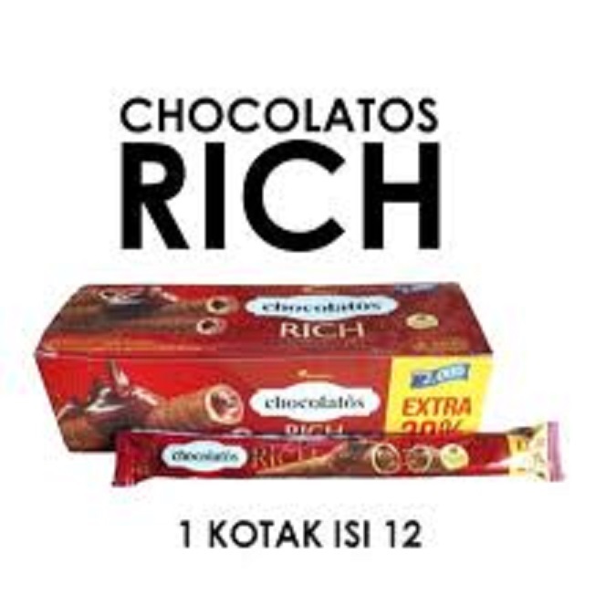 kemasan 1 box isi 12 pcs Chocolatos Roll Chocolate Rich 19gr+ 3,8gr BOX