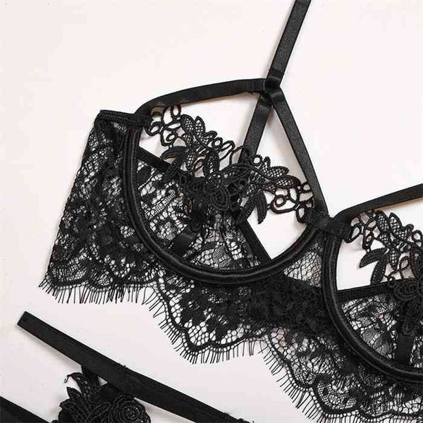 hollow out lingerie push up underwire bra set transparent underwear set erotic lingerie set lace brief sets, Black;white