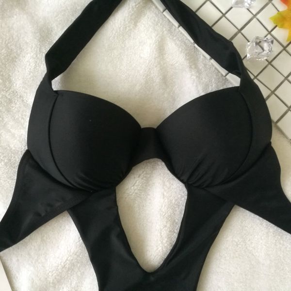 hollow with new out one-piece steel brackets gathered together for women's swimsuit, White;black