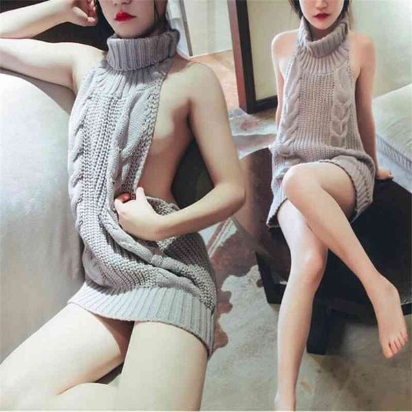 hoodies & sweatshirts women's turtleneck sleeveless long sweater knitted backless women sweaters and pullovers with high quality, Black