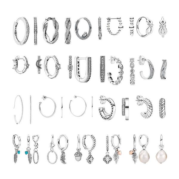 hoop & huggie women large ear piercing earrings 925 sterling silver original pearls zircon fine jewelry bead moon star love knot feather, Golden;silver
