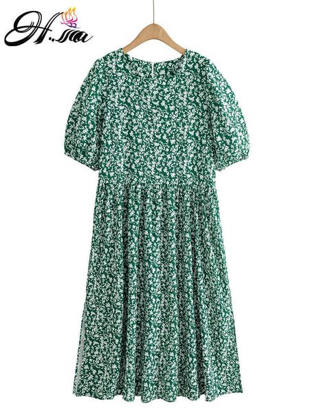 hsa women's printed maxi dress summer sundress chinese style casual short sleeve vestidos female floral robe femme 210716, Black;gray