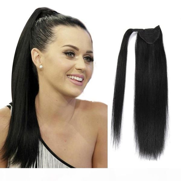 human hair brazilian hair ponytails 100% human hair extensions clip in nice straight wave wholesale prices, Black