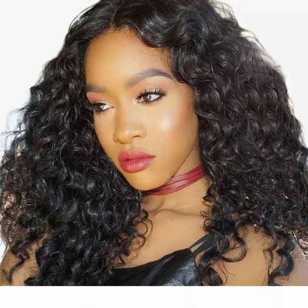 human hair wigs loose curl with baby hair pre plucked glueless virgin brazilian loose wave lace wig for black women, Black;brown
