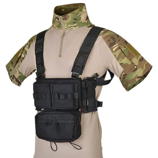 hunting micro mini flight 3 chassis modular h harness chest rig subaabdominal sack 5.56 molle mag pouch nylon men solid, Camo;black