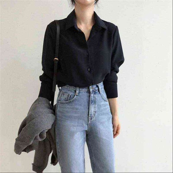 hzirip korean solid loose women blouses chic basic ol formal all match office lady brief slim shirts streetwear, White