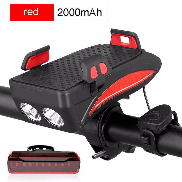in 1 bicycle light taillight set headlight mobile phone holder with horn waterproof usb charging safety mtb equipment bike lights