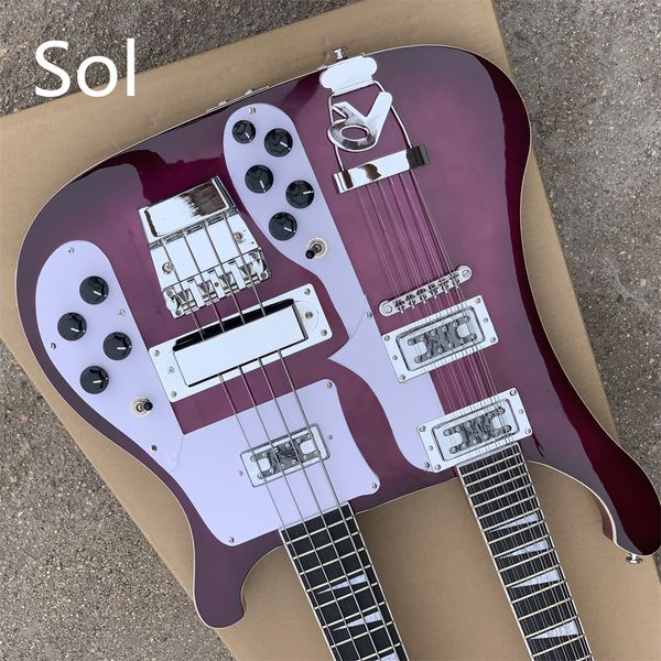 in stock factory custom 12 and 4 strings wine red body double neck electric bass guitar chrome hardware provide customized service immediate