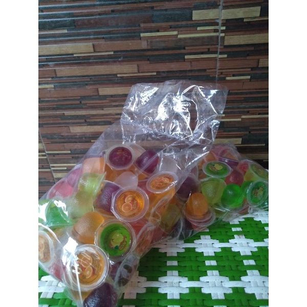 agar agar inaco rasa aneka buah. melon, strowberry, nanas, leci, anggur, jeruk. dikemas kurang lebih 1kg isi 64pcs.