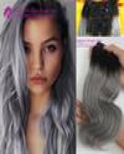 incomparable grey clip in chinese human hair 1bgrey hair extensions boby wave grey hair weave ombre grey human hair extensions3188738, Black;brown