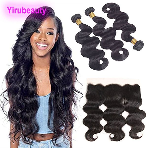 indian bundles with frontal pre plucked body wave 3 bundles with 13 x 4 lace frontal human hair extensions, Black;brown