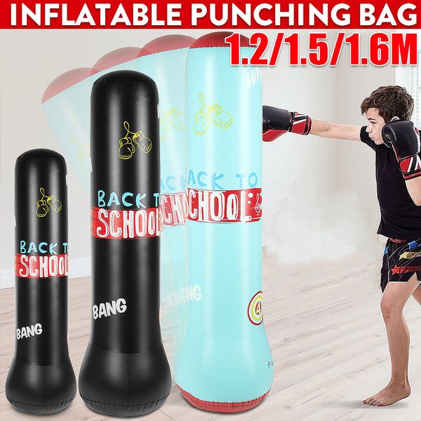 specification: color: black; green material: pvc type: inflatable height: 120cm/47.24"; 150cm/59.06";160cm/62.99" [conversion: 1cm=0.3937 inch, 1inch=2.54 cm] features: 1.this product is a fitness hit sandbag, made of environmentally friendly pvc material, safe and non-toxic. 2.easy to inflate and deflate, can be folded into small size for storage, convenient to use. 3.it is an ideal boxing training accessory, good for relieving pressure, body building, etc. 4.suitable for both adults and children. package included: 1x inflatable boxing punch bag